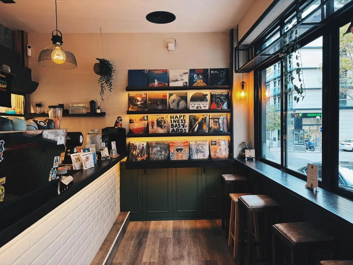 Specialty coffee and vinyl records in Prosperidad, Madrid. Walk in, pick a record, and let the music play while we pull your shot.